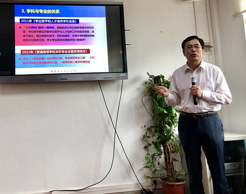 何传添从学科与专业的基本定义和关系出发,结合第四轮学科评估指标体系,阐释了学科建设的基本内涵,明确了学科建设的6个重点方面,即人才培养是核心、师资队伍是关键、科学研究是支撑、服务需求是导向、学术交流是影响。根据我校第四轮学科评估的结果,结合相关指标排位的具体数据,何校长全面系统的分析了我校学科建设的基本现状,学科评估中反映的问题;在全国各高校高度重视“双一流”建设的新态势下,何传添通过大量数据对比、案例分析,并结合我校实际,强调了学校“强优势、补短板、显特色”的“上榜进位”建设目标,以及下一阶段学科建设的基本思路与具体对策。